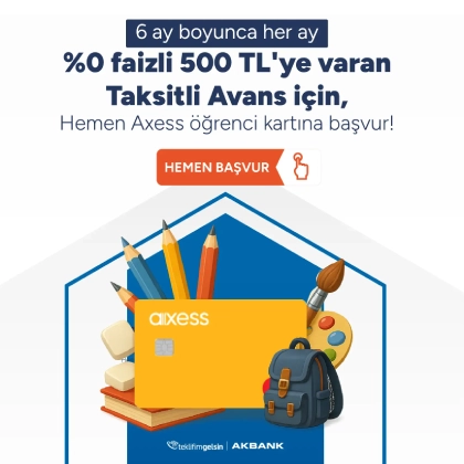 Kampanyalar- 6 ay boyunca her ay %0 faizli 500 TL'ye varan Taksitli Avans için, Hemen Axess öğrenci kartına başvur!