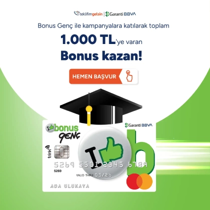 • Bonus Genç kredi kartı ile avantajlı alışveriş fırsatlarından hiçbir aidat veya yıllık üyelik ücreti ödemeden yararlanabilirsin.